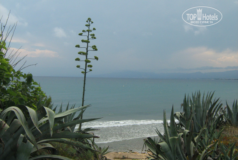 Пляж маленький. Факт. Но рядом можно найти чудесные места. Немного пройти в обе стороны. Если к морю стоять лицом, то налево камни, а за камнями небольшие пляжики соседних отелей. Мне же нравилось нырять и купаться с камней. Народу мало, вода чистейшая. Бассейн нас не интересовал, ехали к морю, а не в хлорке купаться. Но один раз залезли поиграть в мяч. Я вышел из воды и заметил на животе прыщи. Побежал мыться в номер... прошли только через несколько дней после купания в море! После этого больше нигде никогда к бассейну даже не подхожу!