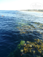 2. Море замечательное. Понтон 100м. все эти 100 метров мелководье,на котором можно гулять, смотреть разных морских тварей, есть довольно большая песчано-каменистая лагуна, в которой воды примерно по плечи, в отлив по пояс где-то. В этой лагуне вода под вечер невероятно теплая, рыбки плавают.какие бы ни были волны-купаться можно с удовольствием. Для ребенка просто рай!Взрослые купаются с понтона, ныряют с масками. Рыбы,кораллы, все очень красиво.