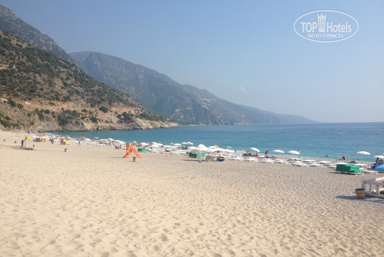 Пляж муниципальный, лежак - 6 турецких лир, зонт - 6 лир. За три лежака и зонт мы платили ежедневно 24 лиры. Вам выдают талон на весь день. Вообще, до нашего приезда у отеля с пляжем был заключен договор на бесплатное пользование пляжем туристами из Балджекиз Бич, но в день нашего приезда контракт закончился, и мы весь отпуск пребывали на пляже платно))