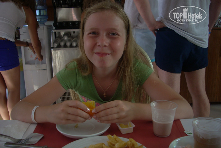 Отдыхала я с дочкой 10 лет с 12 июля 2013 по 22 июля.Приехали мы около 10 часов утра, на ресепшене нам сразу одели браслеты и проводили на завтрак. Заселили около 13 часов,дочка уже успела искупаться в бассейне. Достался номер 101 с видом на ресторан.(носильщик довез наши чемоданы, показал все в номере. Очень вежливый и внимательный!) По поводу номера я сначала расстроилась: 1-ый этаж,вид.., но рассудила здраво,что мы там только спать!))) в номере большая двушка+ односпальная кровати, жк на стене,все красиво,нигде нечего не течет!! Красота! Об этом уже все выше писалось.