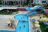 Про питание хочу сказать, что всё очень-очень вкусно. Супчики-пюре в основном, лично я их обожаю. Баклажаны в самом разном виде, только в Турции их так вкусно готовят:) Салаты всякие разные и со сметаной и без и просто нарезанные овощи. Всё свежайшее, ни капли кислинки нигде нет!! Мне есть с чем сравнить, в Египте к таким салатам со сметанкой и притрагиваться нельзя, а здесь всё свежайшее! А какие соленья, я у нас такой вкуснятины не ела, пытаюсь теперь повторить рецепт:) Горячее каждый день разное - то рыба то мясные всякие котлетки, колбаски, курица, макароны рис, картошка, овощи на гриле, диетические и пр. Сладости разные, дыня, арбуз. В кухне присутствует много национальной еды. Я не зря уделяю столько внимания питанию,т.к. много негативных отзывов по этому вопросу. Ну странные люди которые платят за путевку небольшие деньги и хотят королевских изысков. К тому же вы приехали в другую страну и не трудно предположить, что пельмени с борщом здесь не подают! Хочется отметить, что хозяин отеля всегда кушает ту же самую еду и накладывает её с того же стола, это к вопросу о качестве еды. Здесь нет огромного разнообразия как в пятерках, но каждый может найти для себя то что ему понравится:))) Кофе в аппарате очень вкусный - каппучино, шоколад и пр. В связи с чем чай пила только 1 раз, уж очень вкусный каппучино. Такой же аппарат стоит около бара. Единственное - не пейти эти цветные юппи и не травите ими детей, об этом и гид в отеле говорил. Кола и спрайт обычные, кто то писал что кола ужас....бред какой то...чем можно испортить колу - водой разбавить или виски?)) Да нет, вроде не разбавленная)). Про снэки вечерние ничего не знаю,т.к. мы так часто не едим)