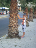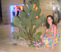Территория у отеля действительно не большая, но вполне уютная. Достаточно большой общий бассейн с винтовой горкой(это развлечение как всегда нравиться одинаково и взрослым и детям), плюс рядом для малышей. Лежаки-зонтики в достаточном количестве. Уютная веранда на уровне первого этажа. Посетитель бара я была, если сравнивать, незавсягдай. Но подходя освежиться колой, могла и не говорить о своих пожеланиях. Персонал что в баре, что в столовой очень внимательный, шустрый!!! и улыбчивый. Хотя на такой жаре как им к концу рабочего дня это только удавалось.