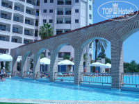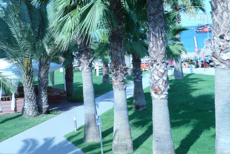 Территория не большая, чистая, море чистейшее, теплое, соленое-дочь облизывала пальцы)))), мелкая галька, бассейн для взрослых и детей, 2 водные горки в отдельном бассейне, дет площадка, газончики, гамаки, лежаки... За территорией деревня.