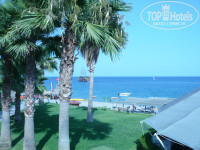 Номер с видом на море в основном здании с балконом - есть всё необходимое (телевизор, фен, мыло, гель д/душа, шампунь, набор д/починки одежды, телефон, сейф, вешалки, губка д/обуви-)))), кроме утюга (стирка и глажка - платный сервис), и нет зубной пасты с щётками. Шум анимации в номере слышен, но с 13 до 14,30-как в тихий час. Дочь (ей почти 4 года) спала. И после 23-23,30 тоже тихо. Ночную дискотеку в номере не слышно.