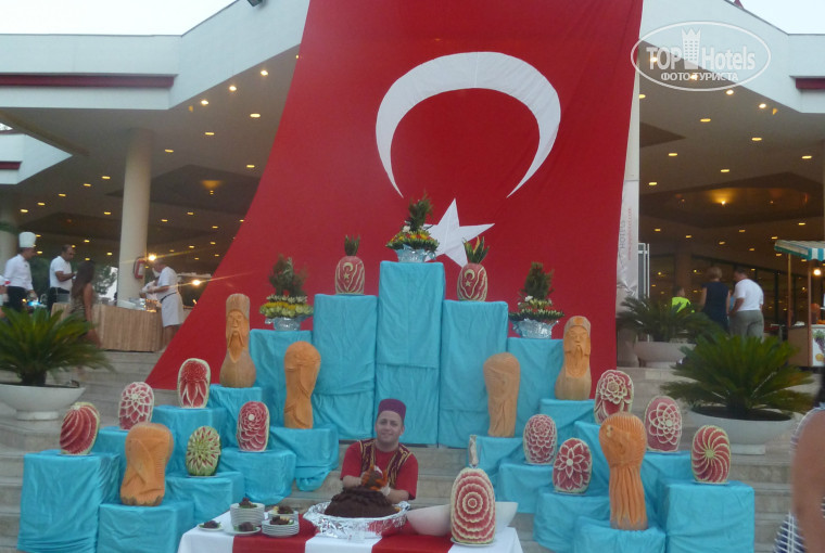 Питание. Питание отличное!!! мясо.. рыба... овощи во всех видах и состояниях!!!! морепродукты.. раки.. окрошка... сладостям нет предела! фруктов много!! те кто пишут, что есть им нечего явно неадекватные!!! все вкусное свежее! шеф-повару огромное спасибо!!!! бывало, конечно, что официанты не успевали принести приборы, но они не сидят и не прохлаждаются... меня сильно не напрягало самой взять себе вилку!!!! а в детской зоне вообще такой проблемы не было!! официант там все успевал.. приносил.. уносил ))) обедали и ужинали всегда там!!! по поводу алкоголя... конечно... он разбавленный.. но это правильно!! когда в 10 утра народ начинает заправляться - это никакой организм не справится!! если придирчивы в этом вопросе - покупайте в duty free!!!!