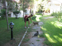 Кошки. Отдельно про них даже. Вальяжные, упитанные, лежат везде, где возможно, жрут всё. Т.к. мы сами очень уважаем эти существа, имея двух дома, для нас было особой радостью видеть их ещё и на отдыхе. Рыжий даже в гости заходил, но надолго не задержался, поговорил (помяукал) и ушел.