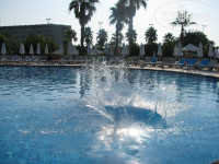Бассейны. Чистые. Не могу сказать что сильно много хлорки, по крайней мере мы видали и больше гораздо… У очень красивого бассейна напротив главного корпуса – в основном одни иностранцы. В основном бассейне проходят игры, конкурсы, аква-аэробика. На 4 горки – 1 (2 если безобразничать начинают) смотритель наверху и 1 (спасатель с аптечкой) внизу.