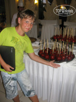 Питание. Напитки: Самая большая радость – это свежевыжатый сок на завтрак, обед и ужин! Насколько знаю – в начале сезона он был только на завтрак и платно. Вообще напитки очень достойные и алкогольные и б/алкогольные. Вкусные пакетированные соки. Про алкоголь: вино красное, белое, розовое, сухое, достаточно приличного качества, Мартини, Чивас, Ред Лейбл, Олмека серебр., Смирнофф, Русский стандарт, Абсолют, брендовые коктейльные ликеры. Детские коктейли – и молочные и не молочные очень вкусные! Еда: основной ресторан: не могу сказать что однообразно. Ведь наверно если дома каждый день по 3 раза в день питаться в одном и том же ресторане (кафе) – тоже надоест. Достаточно вкусно, особенно на 3-4 день, когда уже все перепробовали и можно аккуратненько брать то, что именно тебе вкусно. Порадовало картофельное пюре – из настоящей картошки! Единственное, что не очень – слишком много совсем острых блюд, и мясных и овощных. Фрукты: арбузы, дыни, персики, нектарины, виноград, сливы, яблоки, бананы – на мой взгляд и достатчно. Официанты в час-пик, особенно в обед, не всегда успевают, т.к. часть их обслуживает снек-бары у бассейна и у пирса «16+», но нас не напрягало пойти и взять самим то, что нужно. Самое лучшее время завтрака – 7:45-8:00, обеда – 12:45-13:00. Еще не много людей, нет очередей. Снек-бары: для разнообразия довольно вкусно, вполне можно пообедать. Хот-доги, сэндвичи, гамбургеры, донер, картошки, пицца, курочка-гриль, спагетти с болоньезе… Отдельное слово – мороженое. Заводское, в упаковке, 14 видов примерно! Очень вкусное. А в «сладком» баре есть обычное турецкое, которое накладывают в вафельный рожок.