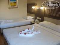 Отель нам порекомендовали в турагентстве.Отдыхали семьёй (я, муж и сын 12 лет).Смущала долгая дорога от аэропорта,(раньше старались брать путёвку поближе),но мы её даже не заметили.Встретили нас приветливо и отправили на обед.Сразу после обеда нас разместили в уютном номере на 6-м этаже с видом на горы.Но это нас не растроило,т.к целыми днями мы пропадали на пляже, в бассейне или сауне.Каждый находил чем заняться:муж в тренажёрном зале,сын в бассейне или в миниклубе,я на массаже.Уборка каждый день.Пляж большой,числый,вода бирюзовая.......Питание отличное,напитки на любой вкус и на пляже и в отеле,и около бассейна(когда приехали домой не хватало шведского стола).Все вокруг приветливо улыбаются....По вечерам анимация у бассейна - очень удобно,т.к. можно совместить ужин,чаепитие и просмотр вечерней программы.Территория не большая,но уютная.Рядом есть магазины,можно прогуляться.Вобщем мы остались довольны.Отдых получился очень приятным, спокойным,семейным и не дорогим.Жаль,что очень быстро время пролетело...Думаем ещё раз там отдохнуть!!!