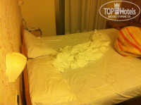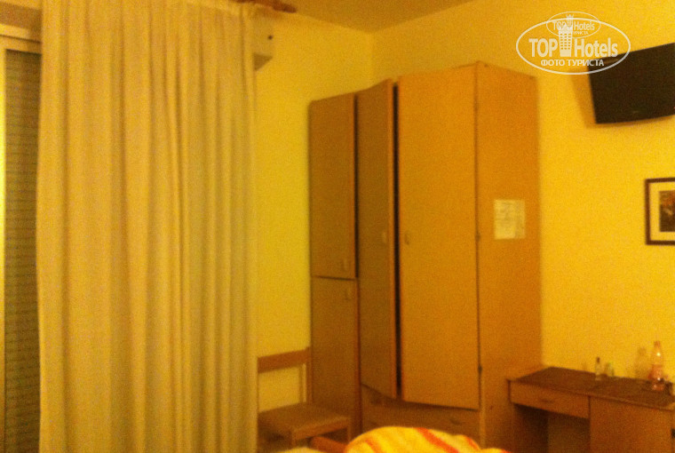 Нас ездило пятеро человек, поэтому бронь была на два номера. Заранее мы попросили номера побольше, поэтому когда приехали нас ждали несколько из самых больших номеров, чтобы были — 20 и 17 кв. метров. Чтобы узнать, какого размера ваша комната, стоит лишь найти у себя на стене план этажа с подробным метражем всех комнат (в отеле есть номера и по 7 кв.метров и побольше, по возрастающей; как вам повезет). В нашем номере была двуспальная кровать с удобными для сна матрасами, ДВА балкона (потому что комната находилась на углу отеля), 3 стула, еще одна, но не застеленная кровать, довольно большой шкаф с вешалками, сейфом и отсеком для большого чемодана, фен, зеркало, несколько тумбочек, вешалка для одежды. На балконах были тяжелые жалюзи с внешней стороны и шторы с внутренней, так что утром у нас всегда было темно, а днем, когда мы поднимали жалюзи, было ну очень светло и уютно в номере. С ванной комнатой нам , можно сказать, тоже повезло: вытянутая в форме коридора и довольно просторная, что в ней могли поместиться пару — тройку человек одновременно. Начиная от окна (которое между прочим выходило на соседний балкон) в ванной находился унитаз, биде, дырка в полу, которая ограждалась занавеской со всех сторон, раковина с зеркалом и еще один стул. Сразу хочу заметить несколько вещей: мы всегда принимали душ в пляжных шлепках, потому что было очень противно ступать на хлюпающий дырявый коврик на полу, но вода из душа абсолютно всегда была с хорошим напором, что блин радовало, когда живешь в таком отеле. Что касается уборки номеров, то ее проводили каждый день, но такое ощущение, что только заправляли постель, мыли пол в ванной и частично меняли полотенца, потому что пыль на мебели как лежала, так и продолжала лежать до самого нашего уезда. Все в номере, если честно, было не очень приятное, пришлось даже покупать салфетки, чтобы постелить их на стол и только потом ставить туда вещи; тумбочками по этим же причинам тоже не пользовались; ну а вешалка для одежды была до того хлипенькая, что несколько раз отваливалась а полотенца с нее съезжали, поэтому желание ей пользоваться также отпало. Что касается слышимости номеров, то это да, мы жили с другой частью семьи в разных концах этажа, но слышали из нашей комнаты, что они говорят, когда открывают дверь. Слышно было также как ночной портье будит например на экскурсию людей из соседней комнаты; невольно встаешь вместе с ними, что — что а звонок телефона в номере оочень громкий. НО при этих же недостатках номеров этого отеля шум снаружи нам никогда не мешал спать и вообще, мы поняли, что когда несколько дней поживешь - освоишься, то привыкнешь ко всему в номере и не будешь замечать недостатков. Сейчас, конечно, я их выделяю специально для людей, которые еще приедут в отель Losanna. Пусть будут ко всему готовы :) Вкратце опишу еще одну «нашу» комнату. Она была на немного больше нашей (20 кв.метров), но это не означало, что она просторнее — номер был вытянут вдоль боковой стены отеля. По этой же стене в ряд стояли три отдельные кровати, каждая с тумбочкой. В номере также были фен, одно небольшое окно, столик, четыре стула, телевизор без русского канала и шкаф. Если мы все собирались у них за столиком, к ванной было невозможно пройти, так как становилось тесно в проходе вдоль кроватей. Ванная комната в свою очередь была огромной, с учетом п