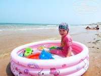 4. Залив. Выбирали отель, чтобы обязательно был на берегу залива, в такую жару, тем более с маленьким ребенком, это очень важно. В первый день вода показалась очень теплой, как в ванной, но в остальные дни был ветерок и волны, вода даже немного охлаждала. Предполагали, что в это время года на пляже невозможно находиться с ребенком с 10 до 17 часов. Оказалась вполне приемлемая температура, когда находишься на берегу или в воде, ветерок обдувает, заходили в номер только в 12-12.30 часов, когда ребенку нужно было спать, в 16 часов возвращались обратно. Лежаки в любое время свободные и на пляже и у бассейна. Огорчило, что в период нашего прибывания было очень много тины, пахнет она неприятно. Мы уходили в правую часть пляжа (если стоять лицом в заливу), там тины либо не было вообще либо была, но в небольшом количестве. Несколько раз уходили по пляжу через забор, там вода абсолютно чистая. На берегу много ямок, с сидящими там крабами, волнами выбрасывает морских звезд, развлечение детям.