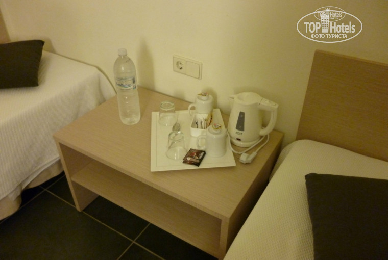 3. Питание разнообразное по системе "шведский стол", всегда есть что выбрать. Но напитки не радуют - соки и лимонады из концентрата, вода опресненная, чай и кофе на такой воде лично мне не нравятся. А вот пиво и молоко вполне можно пить :) Альтернативных напитков за деньги не предлагают, но можно купить в магазинчике внизу или дешевле в супер-маркете в Кардамене. Но лучше конечно попробовать и местную кухню, домашнее вино, морепродукты. Очень вкусно!!!