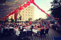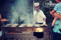 Питание. Нормальное там питание, я вам скажу. Голодным не останется никто. Много овощей, салатов, нарезок, тушеных блюд, разнообразные гарниры, из фруктов каждый день арбузы и дыни, похожие на тыквы)), иногда слива, виноград, персики! о боже, какие там персики!!! с пальцами съесть можно! Так же много разных сладостей, невозможно все попробовать. Напитки: чай, кофе, напитки типа юпи, мы не пили, вода из кулера, пиво ефес, газировка, вино белое-красное, и всякий мною не употребляемый крепкий алкоголь типа водки, джина с тоником, можно без тоника, миксы всякие и тп... По воскресеньям у них шашлык из курицы, очень вкусный. А так рыба на гриле, вкуснейшая, если шеф не влюбится))), всякое фри, иногда делают интересные вещи, но я такое не ем)) котлетки на гриле, но соевые, дети иногда их клевали. На пляже есть кафе, где можно хорошо пообедать, там и овощи есть, и макароны с любимой картошкой фри, арбузы, напитки. Про женщину с лепешками уже писали неоднократно, скажу только - безумно вкусно!!! Что меня особо порадовало, ни у кого не было расстройства желудка! Вся моя аптечка оказалась не нужной, так что не бойтесь ничего!)