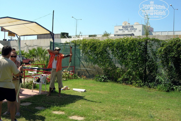 Сервис мягко говоря ненавязчивый. Контингент немецкие пенсионеры и дети ипочему то много турков, последние нажираются в алл-инклюсив барах не хуже нашего быдла. Алкоголь плохой. Анимация никакая. Интересно только когда приглашают професиональных танцоров на турецкий вечер - 1 раз в неделю. По русски никто не говорит, только по немецки!!!Я говорю по немецки и англ. свободно но для многих это проблема.. Питанию ставят 5 а дерьмовые разведенные напитки не оцениваем? Кондиционеры в номерах плохие, не охлаждают почти. У бассейна места нет. На пляже есть. Там реально скучно, но через дорогу в 1 км есть диско аудиториум, вход 12 евро с человека. Ходит шатл на Аланью в 11 вечера на дискотеку Робин Гуд забирает в 4 утра, стоит 20 баксов, но аудиторум лучше. Бильярд был все время закрыт, да и качества стола позволяет играть только в жопу пьяным. Раз в день в 10 утра можно пострелять из лука - набирается 5-6 чел и поочереди стреляют. Повеселила компания немецких подростков (были сродителями) которые как то умудрились провезти феноборбитал - они еле одуплялись обгашеные наркотой - а их родители не просекали тему а все обсуждали что с детьми на море стало... вот такие развлечения