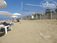 4) Собственный чистый пляж, много шезлонгов, рядом бар и воллейбольная площадка.