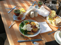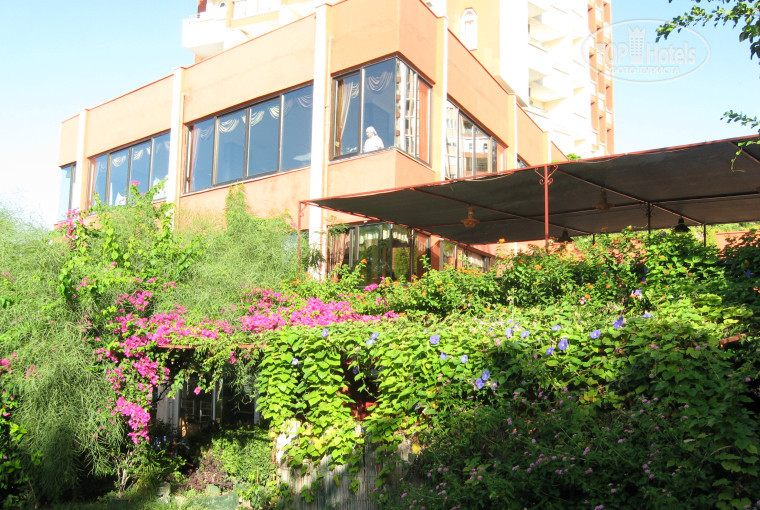 Питание в отеле нормальное для того, кто не хочет переедать. Мы даже пожалели, что взяли "все включено". Возьмешь на тарелку всего по чуть-чуть, а получается огромная тарелка! Большое разнообразие овощей тушеных, соленых. Курица каждый день приготавливалась, а вот рыба была не каждый день. Хотелось морепродуктов, но их вообще не было. Подавались еще сосиски и котлеты, но я их не ем, поэтому не знаю, насколько съедобные. На десерт были какие-то сладости (не ем сладкое) и несколько дней давали арбуз, потом на его замену появились полузрелые сливы. Но за неимением лучшего и они съедались:) Утром очень хотелось кофе, но был только растворимый. Мы успешно заменили кофе черным чаем с мятой и лимоном. Мята была практически всегда. И зелени было вообще много.