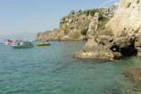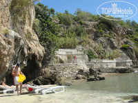 Пляж не очень удачный - бетонная платформа, но спустившись с нее в море, можно пройти на песочек. Зато благодаря расположенным рядом скалам получаются очень красивые фото. Лежаков не всегда хватало, но мы с подругой много времени проводили в море (плавали на соседние пляжи- изучали окрестности), поэтому обходились без них. Но к 12ч народ подтягивался к обеду и лежаки освобождались.
