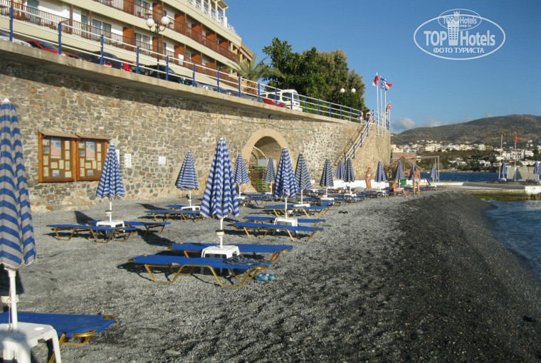 В этот отель стоит приехать только даже из-за его расположения на берегу моря в заливе Мирабелло,рядом торговые улочки и озеро,где полно кафе.Раз в неделю, по средам, там приезжает рынок, который занимает целую улицу,тоже не плохое развлечение.Да и сам Крит великолепен!