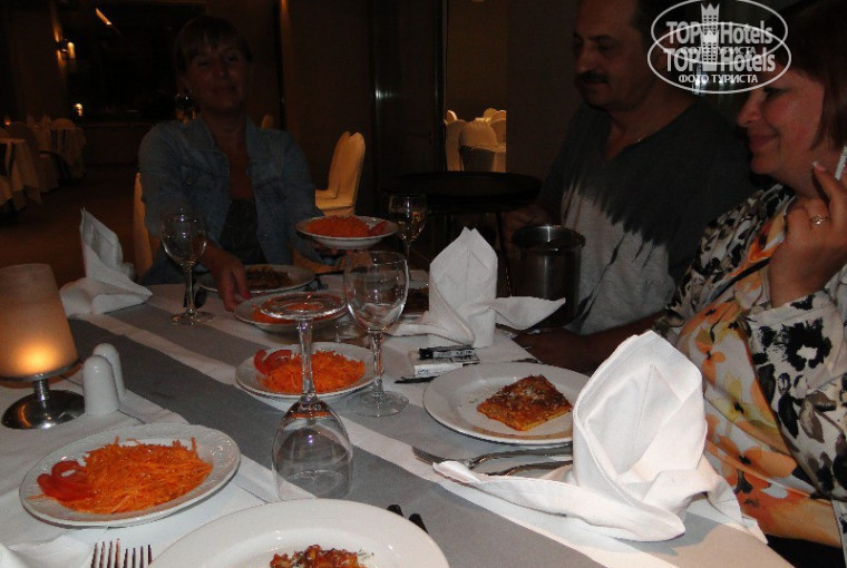 Теперь о неприятном. Полное отсутствие нормального шведского стола на ужин. Его просто нет! А деньги платили именно с учетом нормальной еды. Еду приносят сами официанты, без выбора. Ни разу за 14 дней не было рыбы и морепродуктов, что для Греции и особенно для 5* не может быть нормально. Еда на ужин была невкусной, пересоленной, однообразной. То курица, то какие-то котлеты, один раз была свиная шея.