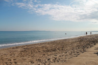 МОРЕ рядом, три минуты ходьбы. Пляж очень большой, около 4 км. Песочек, при входе в море есть камешки. Море с волнами, с утра бывает затишье, а после обеда ветер меняется, и волны иногда даже большие. Мы плавали с удовольствием, прыгали на волнах. )))) вода освежающая. Шезлонги на пляже платные, 2 евро, или купить напиток. Но если пройти подальше вправо от отеля, в следующий бар - там с нас плату не брали ни разу.