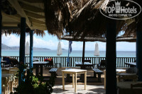Зона, в которой проходят ужины, оканчивается открытой верандой, на которой днем стоят лежаки и зонты. Еще одна зона с лежаками расположена чуть ниже, на крыше бара.
