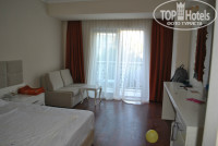 1. Размещение. Ставлю твердые 5 баллов. Приехила мы в отели в 6 утра, 3 семьи сразу. всех расселили тут же без проблем и доплат. Видимо отель был заполнен не полностью. Нам с дочкой дали номер стандарт (оплачивали эконом) в 1 корпусе. К номеру претензий нет, большой, чистый, красивый достаточно. Есть все что необходимо и даже больше (например тапочки, даже для пятерок редкость). Вода горячая у нас была всегда, но вот ребята с которыми мы там сдружились оказались в сложной ситуации. У них за 10 дней горячая вода была всего пару раз. Обращения на ресепшн результатов им не давали..... Уборку делали каждый день, белье меняли пару раз. К уборке претензий нет. Холодильник, телевизор работали исправно, WI-FI в номере ловил, окна выходили на лобби. Но интернет там платный и это поразило.... В общем когда мы заселились я уже обрадовалась что попали в счастливое лето, но утром все чуть изменилось.....