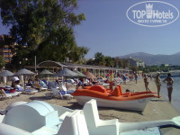 4) пляж маленький, много окурков в песке, убирают только стаканы. Если придешь на пляж поздно, приходится выбирать лежаки из груды поломанных. Администрации нет никакого дела. Матрасов нет.