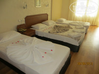 Номера довольно большие, с балконом. В разных номерах покрытие разное - где-то ковровое, где-то ламинат, где-то комбинированное. Мы жили на 2 этаже с видом на бассейн. Вечером очень шумно,я бы даже сказала оглушающе - музыка от своего бара и звуки анимации из соседнего отеля , даже с закрытым балконом очень громко. Нас спасало то, что мы так выматывались за день, что быстро засыпали. В тех номерах, что выходят на улицу, тоже довольно шумно - под окнами круглосуточно ездит туристический транспорт, да и музыка от бассейна немного долетает, но это просто ничто по сравнению с той стороной, что выходит на бассейн. В нашем номере в ванной подтекал кран, он не закрывался до конца, но мы решили не обращать на это внимания: раз администрацию отеля не волнует, что у них деньги утекают через кран, то нас и подавно. Горячая вода бывает днем в определенное время, когда нагреется, застать ее не всегда удавалось. В соседнем номере не работал слив унитаза: неоднократно просили починить, сантехник приходил, но сделать ничего не смог. Видимо, в таком случае выход один - поменять номер. С горничной мы подружились: всегда здоровались друг с другом, улыбались, мы оставляли ей шоколадки и доллары, она нам - чистоту и полотенца в нужном количестве. Шампунек в номере нет, только жидкое мыло в дозаторе. Шторка в душе короткая, вода бежит на пол, как ни старайся этого избежать, я так поняла, что это беда всех турецких душевых:). В соседнем номере была ванна, мыться гораздо удобнее.