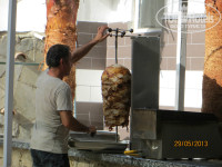 Кормили нас просто на убой, очень вкусно, всего хочется попробовать...мы за две недели даже черешню покупали всего раза три, потому что желудок был так набит, что ничего уже не хотелось. Хотя планировалось, что в Турции мы наедимся черешни по 2 доллара за кг на год вперед:)...Столов много, мест всем хватает, правда часто на раздаче очереди, особенно за мясными блюдами, которые тут же на гриле готовит шеф. Иногда было очень лениво стоять там по полчаса, поэтому я обходилась без гриля, брала что-нибудь другое. Заметила, что когда мы только приехали, выбор блюд, особенно мясных, был побольше, очередей было меньше. А потом народу прибавилось, мясо уменьшилось, очереди выросли :). Но все равно, едой мы очень довольны. Не очень понравилось, что чай и кофе можно пить только в часы приема пищи, а в другое время они вне доступа. Попить можно в баре - сок из пакетов, газировку из кег, пиво и какое-то спиртное (я только пару раз пробовала вино, вроде приличное), вода в кулере. Воду мы наливали в свои бутылки, чтоб брать с собой на прогулки, на пляж, на экскурсии. Булочки и яблоки тоже брали на пляж и на экскурсии. Ну извините, если нельзя было, у нас же дети...
