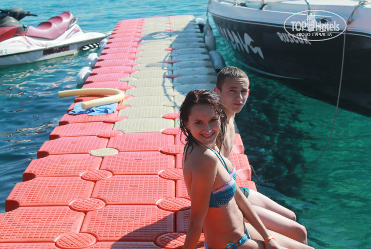 Пляж: единственный минус нет своего пирса, мы ходили плавать с соседнего. но в последний день нас не пускали через него. Заход в море и вправду не легкий, но я так поняла это по всему побережью. Идти до пляжа мин 5