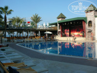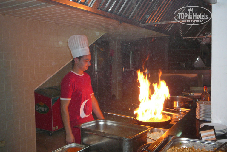 Питание полностью оправдывает заявленное «ультра все включено» - есть и пить можно было практически круглосуточно! Много сдобной выпечки, а также лепешки с сыром и со шпинатом, пышки, беляши, чебуреки. Кроме этого в снек-баре различные чикены, гамбургеры, картошка фри и т.п. Всего я даже и не опишу, но должна сказать, что все, что я до этого упомянула – это далеко не весь перечень предлагаемых в отеле блюд и все это – дополнение к основному трехразовому питанию! Поварам особая благодарность – вся еда очень вкусная!!! Фрукты – тоже очень вкусные: персики, виноград, сливы, арбуз, апельсины, яблоки, груши, бананы!!! По утрам всегда была молочная овсяная и рисовая каша, блинчики, яичница, омлеты. На обед и поздно ночью подавали очень вкусные (для Турции) супы.