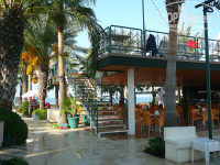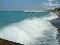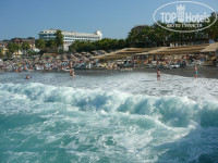 Пляж небольшой, галечный. Вход в море проблематичный – крупная галька и крутой спуск, но есть пирс. Мы ходили плавать с пирса. С лежаками были проблемы, если с утра не занять – потом трудно найти свободное местечко!