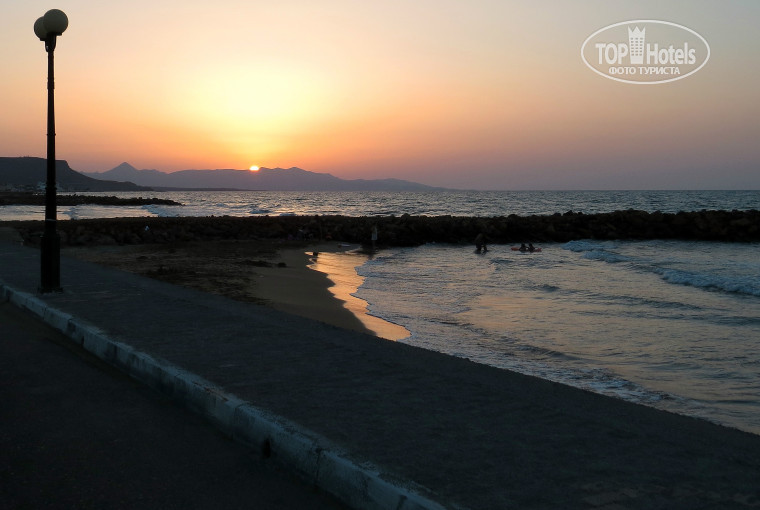 Отдыхали в отеле второй раз, до этого были в июле 2012г. Все апартаменты достаточно большие и удобные, наверно поэтому много отдыхающих с детьми. В номере есть все для приготовления и приема пищи. Номера не новые, поэтому возможны замечания, особенно по сантехнике, но надо обращаться к Олегу (управляющий) и возможно даже повторно, т.к. он тоже бывает очень занят. Территория удобная и красивая, хоть и небольшая. Бассейн удобный для детей, не очень большой. Лежаки у бассейна бесплатно. Уборка регулярно, Мария очень трудолюбивый человек, управляется одна и конечно не очень приятно, когда люди в номере ведут себя мягко говоря нечистоплотно. Управляющий отеля Олег - это человек, который всегда готов помочь, объяснить, проконсультировать как по вопросам отеля, так и отдыха вне отеля. Знает историю Крита, расскажет и посоветует где-что посмотреть. Пляжи (справа и слева от волнореза) прямо напротив отеля через дорогу в 10 метрах от входа на территорию отеля, поэтому можно купаться на пляже, а загорать на лежаке у бассейна (если не хочется на песке пляжа). Питание - завтраки: кофе/чай, сок, бутерброды с сыром, колбасой, повидло, для завтрака хватало. Обеды лучше в таверне "Амброзия", спросите у Олега визитку, которую покажете в таверне и вас будут угощать за счет заведения вином, ракией и фруктами. Отдыхать на Крите просто в отеле весь отпуск, значит потерять время и впечатления. На Крите надо обязательно планировать арендовать машину, проблем с этим нет, прав достаточно и российских. Не бойтесь, что потеряете время на купание и загорание. Так как расстояния не большие, за день успеваете и переехать, и покупаться-позагорать. Мы из десяти дней 2 первых и 2 последних только были в отеле, а в остальные дни побывали во всех самых интересных места: Элунда (крепость Спиналонга), Фестос (раскопки древнего дворца), Иерапетра (пляж с черным песком), Матала (пляж и пещеры хиппи), Элафонес (пляжи с розовым песком, красивые большие белые цветы на горячем песке), Балос (три моря) и Грамвус (остров с крепостью 200м над уровнем моря, неповторимые виды). В общем отдыхом остались очень довольны, загар до сих пор держится. Последний день погуляли по Ираклиону, остались довольны, купили кое-какие шмотки, цены ниже.