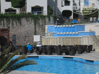 Пляж: небольшой, к которому ведет лестница в 4 пролета (ступенек 45). Плюсы: безветренный, есть несколько уровней, нет проблем с лежаками, есть снек-бар, можно выпить кофе, есть туалет, на пляже поддерживается чистота. Для малышей прибрежная полоса метра 2-3, мелкий песок.