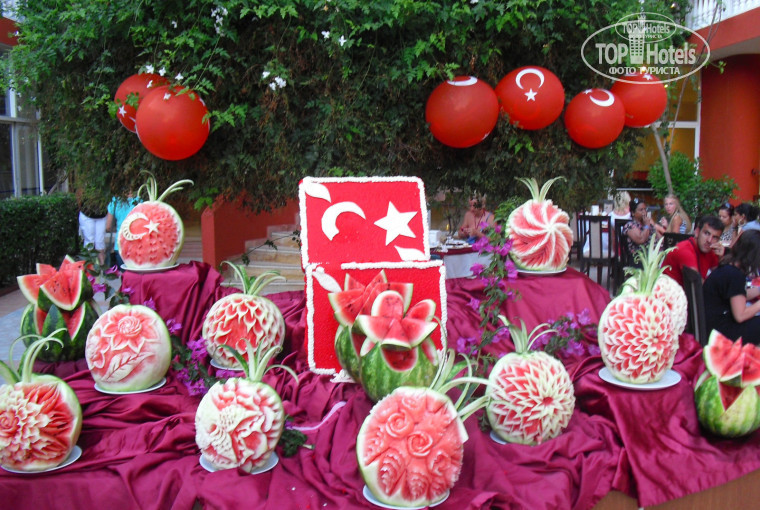 Приехали в отель в 7:00 местного времени, нас сразу же заселили в номера!!! Как и хотели - с видом на море (без какой либо доплаты!!!!!) Проблем с питанием, уборкой в номерах, местом на пляже, около бассейна ни каких не было!!! Вечера проводили на дискотеках (За это отдельное большое спасибо DJ Пикачу!!!!) Хотелось бы еще отметить продавца одежды на первым этаже Мустафу - СУПЕР продавец, со супер скидками!!!! Кто там был, тот меня поймет!!!
