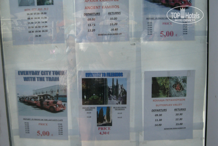 д. Линдос - ехать на автобусе со станции, 5 евро в одну сторону, в самой деревне вход в Акрополь платный 6 евро, лучше идти с экскурсией, но на месте ее не взять(можно взять экскурсию в городе Родосе), без экскурсии было не интересно. лично меня развалины не впечатлили :) осликов, таскающих на себе ленивых людей, жалко!