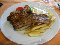питание: завтрак+ужин - на завтрак шведский стол на первом этаже отеля, сытно, довольно разнообразно; ужин - вкусно! в ресторане за отелем, это именно ресторан. нужно взять талончик на ресепшене и отдать его официанту, предлагают на выбор салат или суп, одно из двух горячих, кофе или мороженое. каждый день разные блюда, только салат один и тот же, а супы разные и горячее тоже и порции огромные! если не брать ужин, то покушать куча мест, расположение отеля располагает:) выбор где посидеть огромный. магазинчики, минимаркеты рядом, перекус там можно взять.
