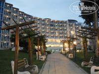 В Болгарии были впервые. Отель выбрали по отзывам в интернете. На мой взгляд, соответствует четверке, пожалуй, что анимации не было, это, конечно, минус, но мы не скучали, в самом курорте есть развлечения. Заселили сразу, номер небольшой, но чистый, с прекрасным видом на море, убирали на совесть каждый день, полотенца и белье через 3 дня. Территория небольшая, но очень ухоженная и вид потрясающий, т.к. отель на возвышенности находится, рядом дорога, но шума никакого не было. Питание отличное, разнообразное и все очень вкусно, много фруктов! овощей, всегда на выбор мясо, птица, рыба. Конечно, если вы любитель хорошего кофе и алкоголя, то нужно доплатить, но для нас, как особо не пьющих, в пределах олинклюзив все было на 5ку. В номере есть проводной интернет бесплатный, в лобби вай фай без перебоев. В отеле тихо, много немцев. Есть крытый бассейн и спортзал неплохой. Есть и спа салон, цены умеренные! Совсем рядом с отелем есть главная достопримечательность - монастырь просто восхитительной красоты, торговая улочка, но сувениры там подороже, чем в Несебре, например, но в переводе на рубли все равно дешево) . Нам с погодой не очень повезло, было прохладно, поэтому вечером ходили в бассейн с термальной водой. Там немного по-советски, много русских, но нам нравилось, время не лимитировано, цены приемлемые рублей 150 за вход, абонементом дешевле. Рядом с отелем автобусная остановка - до Варны минут 20-25, там отличный шоппинг, проезд муниципальным автобусом рублей 30. Также минут 15 пешком и дойдете до ботанического сада, вернее это огромный парк, очень чисто, можно и на пикник, если костры не жечь,там оборудованные места есть для этого, очаровательный розариум. Можно хоть целый день гулять, сделать много красивых фото. Вход рублей 40-50. На территории курорта есть магазинчики продуктовые для тех, кто не олинклюзив, и много кафе, еда дешевая и вечерами программа развлекательная. Отель, в целом, большой, красивый, чистый, но тихий, для детей анимации мы не видели, для взрослых ее нет. Но Болгария больше для путешествий )