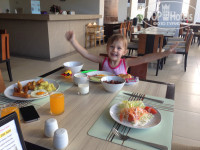 Завтраки были нормальные. На горячее всегда на выбор мясо, рыба, курица- все чередовалось. Макароны, картофель, овощи, бекон, яйца- были всегда. Овощи: огурцы, помидоры, листья салата, кукуруза и пр. так же были всегда. Фрукты : арбуз, бананы мини, папайя. Выпечка- какие то рулетики , булки , плюшки, и конечно разные напитки ( молоко холодное и горячее, кофе, чай, соки в ассортименте).