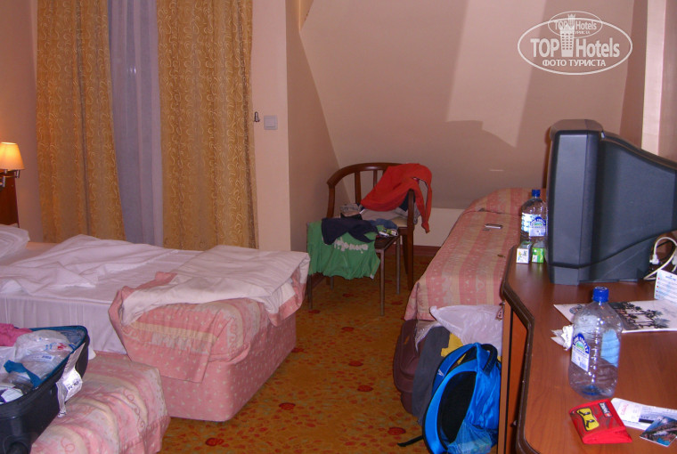 На следующий день после обеда переселились (несмотря на то, что отель заполнен) в 226 комнату. Спасибо Вере с ресепшена. Шум тоже есть от установки кондиционирования на улице, но ничего не вибрирует и при закрытых окнах- полная тишина. Комната большой площади (все боковые номера гораздо меньше, в 2012 году жили в комнате 233- на троих это экстрим, сумей пройти так, чтоб никого не задеть!). В общем, для Посейдона- хоромы)))