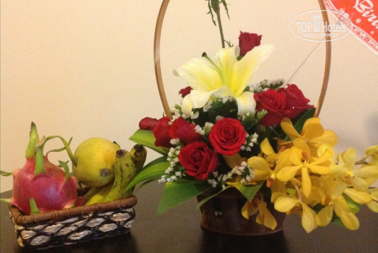 Наш отдых был с 16.12.13 по 23.12.13 . Отдыхом остались довольны и домой вернулись с морем впечатлений. Да ,правда , дорога очень утомительная. Но к этому были готовы морально. Мы на поезде до Москвы 8 часов, метро, аэроэкспресс ,с Шереметьево на самолете Трансаэро до Хошимина 9 часов, и на автобусе до отеля. Нигде задержек не было. Но автобус до отеля 6 часов вымотал. Скорость не больше 60 км/ч. У них такие правила и они к ним относятся серьезно. Сам отель понравился. У него маленькая территория, но очень уютная, много зелени и цветов, иногда пробегают геккончики( было забавно за ними наблюдать как они вечером охотятся у фонарей). Территория очень ухоженная. Есть бассейн, джакузи, бар. В НОМЕРЕ: по приезду была корзинка фруктов( приятно после долгой дороги), чайник,чайная пара,стаканы,ложки,нож,чай,кофе 3в 1,сахар,бутилированная вода ( каждый день по 1 бутылочки на человека), в ванной : шампунь,мыло, кондиционер для волос, гель для душа, фен, расческа, полотенце, одноразовый станок для бритья с гелем , зубные щётки с пастой; халат. Были пляжные полотенца и сумочка. Полотенце для пляжа меняли каждый день приносили в номер вечером в 19.00 работники отеля и талоны на завтрак. Тоже очень удобно , не надо самим ходить менять. У мужа было день рождения и отель сделал бесплатно подарок в виде букета из цветов и корзинки с фруктами. Очень порадовали. Спасибо отелю. Уборка была каждый день. Всё чисто без замечаний. Делали лебедей с лепестками. Молодцы. Кондиционер работал замечательно. Однажды забыли электронный ключ в номере, сходили на рессепшен проблему решили быстро. На рессепшене сидит человек который неплохо разговаривает по русски. Есть сейф, минибар. Но мы ими не пользовались. Пляж в 2 минутах ходьбы,свободные лежаки были всегда. Тут пляже делают массаж . Понравилось. Удобно: сделал массаж и снова на лежачок отдыхать. Не надо никуда ходить. Море очень волнительное. Но это даже забавляло. На завтрак давали омлет или яичницу, фрукты, суп фо, сосиски, чай, кофе, соки, круассаны, тосты, ветчина,сыр и уже не помню. Голодными не уходили. На пляже сидят торговки. У них брали огромные креветки. Очень вкусные. Вечером ходили в разные кафе и рестораны. Понравилось во многих. Но в знаменитой Мадам Дин не очень. Везде люди очень доброжелательные, неназойливые и улыбчивые. В некоторых кафе говорят по русски и меню Русское. Отдыхали от Библио Глобус. Они молоды всё прошло без изъянов. Встретили и проводили всё вовремя. Предоставили много информации. Писать можно много об отдыхе, но делаю вывод: отель понравился и отдых запомнился на отлично.