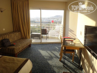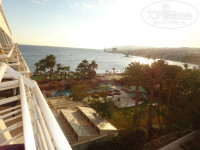 У нас номер был на 6 этаже с боковым видом на море. Дверь номера выходила в атриум общий со столовой, поэтому в номере был запах столовой, а также по вечерам было слышно шоу - программу, которая проходила в лобби - баре.