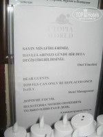 Утопия-отель доброжелательный к туристам. Отдыхающим здесь хорошо, их любят и о них заботятся. В чём это выражается? В тысяче мелочей. Прибывших гостей встречают хостес в красивых костюмах, с холодными полотенцами. Очень приветливые и доужелюбные гест-релейшн и ресепшн. Любой вопрос решался моментально и с улыбкой. Стаканы для пляжа и бассейнов небьющиеся, но не одноразовые, и не из дешёвого пластика, а похожие на стеклянные; в автобусе на пляж водонепроницаемые чехлы на сидениях, чтобы туристы-мокрожопики не оставляли после себя влажных пятен; в туалетах есть маленькие детские унитазики и пеленальные матрасики; когда уходишь из номера, свет выключается не сразу как вынешь карту, а лишь после того, как за тобой захлопнется дверь; душевые на пляже понатыканы на каждом шагу; бич-бой в аквапарке с улыбкой подталкивает отдыхающих на кругах, чтобы спуск был более быстрым и экстремальным, и т.д. и т.п. Няшки на каждом шагу))