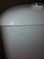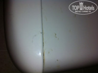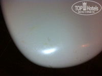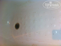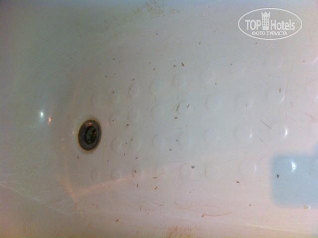 Ванная комната - еще похлеще: ею пользовался еще прапрадед Клеопатры: унитаз - БРРРРРРРР, ванная вся исцарапанная, без резиновых тапочек в нее противно становиться. Потолочного света не было, просто дырки от отсутствия лампочек и горит единственная лампочка, причем без абажура над зеркалом. Видно специально, чтобы весь ужас был менее заметен. На мое требование вкрутить лампочку - это было сделано спустя 3 дня. Унитаз грязный, прям на бочке потеки - вообщем, зашибись, а не номер!!!!