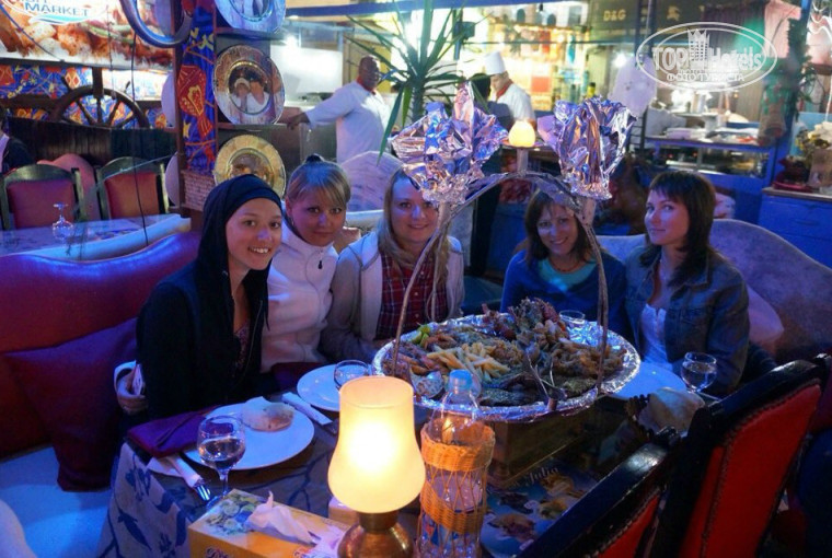2) Питание: понятно, что однообразное и не очень-то вкусное, как везде в Египте... но поразило то, что это первый раз, где еды было меньше по разнообразию, чем в других отелях. Например, не было гриля по вечерам, блинчики по утрам я застала только 1 раз за 10 дней, огурцы и помидоры порезаны шматками, фруктов тоже было маловато- постоянно были гуава и зелёные неспелые дыни и целых 2-а раза )))- гранаты. Рестораны аля-карт- можно записываться заранее хоть каждый день, но еда в них невкусная. Более-менее ещё рыбный. А китайский прям взбесил, что мы ждали нашего обслуживания каждый раз минут по 25-30 (я не преувеличиваю). Везде оставляли чай по 2-3 доллара, кроме китайского... ))) В рыбном прикольные официанты;