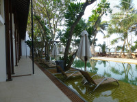 В отеле атмосфера тишины и спокойствия. По территории носятся бурундучки с утра до самого вечера, поют птички. Пляжна полоса - широкая, людей практически нет, что очень порадует тех, кто хочет убежать от ежедневной суеты города. Вокруг нет магазинов, но это совершенно не является проблемой, так, как до всей инфраструктуры Бентотты на тук-туке ехать минут 10-15 (стоимость проезда - 200 рупий).