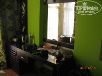 Летели из Харькова от "Тез тура " "Харьковскими авиалиниями". Вылет задержали на восемь часов. Выбирали отель по интернету. Читали отзывы. Понравилась цена и то, что отель новый. О недостатках знали. В Египте были много раз. Всегда отдыхали в 5* отелях. В этот раз решили попробовать эконом вариант. В отеле нас заселили в двухкомнатный номер с кухней. Он был грязный, мрачный и вонючий. Мы покупали номер экскутив с новым ремонтом и джакузи. Мы потребовали наш номер и через час нас переселили. В номере было грязно. Была живая кошка, которая бросила подушки на грязный пол и написяла на кровать. Кошку выгнали, белье попросили поменять. На следующий день номер убрали. Номер очень красивый, большой, плазменный телевизор, ванна джакузи, все новое, только покрыто пылью.Постельное белье и полотенца новые и белые.