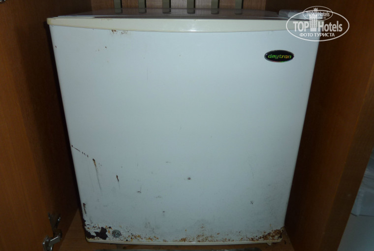 Номер в который нас поселили, представлял собой не просто жуткое зрелище, а напоминал бомжатник. Гибок на потолке или плесень на стенах.(см. фото) Краны в ванной ржавые, унитаз не мытый неделю. Холодильник ржавый, нерабочий. Нет пульта от телевизора.
