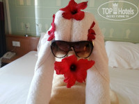 Номера небольшие, но очень уютные. У нас был маленький балкончик. Воду каждый день приносил уборщик по 2 бутылочки на человека. Убирали каждый день, меняли полотенца и белье также ежедневно. Уборщик отличался отменной фантазией в изобретении фигурок из полотенец и покрывала, иногда просто украшал номер цветами. Деньги оставляли ему регулярно.