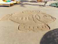 На пляже рисуют на песке рыбок, пирамиды и верблюдов.